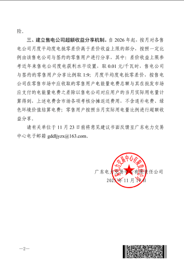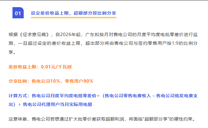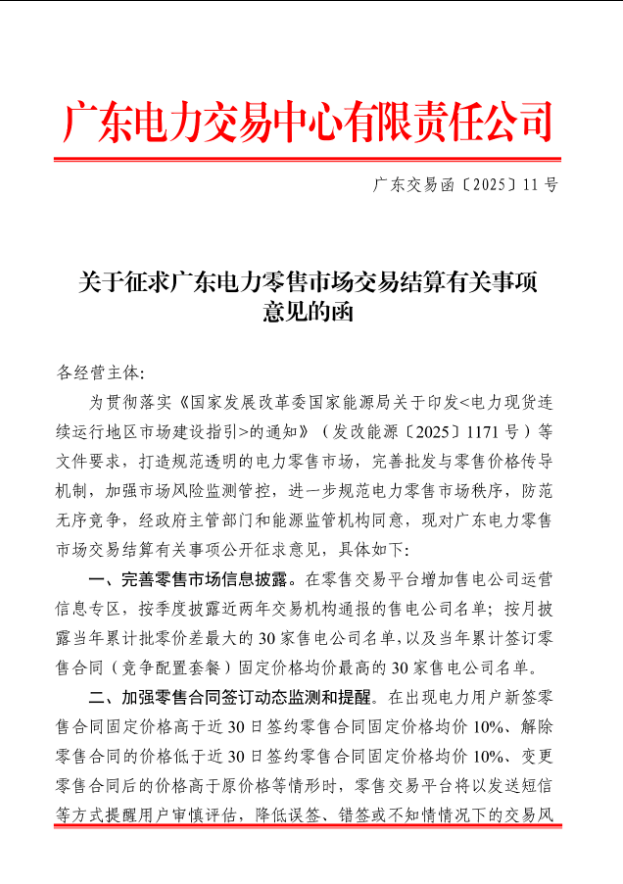 近日,广东电力交易中心发布《关于征求广东电力零售市场交易结算有关事项意见的函》(广东交易函〔2025〕11号,以下简称《征求意见稿》),文件直指售电公司的核心盈利模式——批零价差,明确提出将建立售电公司超额收益分享机制,对售电公司的批零价差收益进行限制,这对于当前普遍存在的、以“退补返利”为噱头的低价营销乱象,无疑是一记重拳。