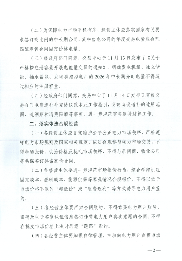 经营主体应签订高比例中长期合同,售电公司年度交易电量需合理匹配零售合同。