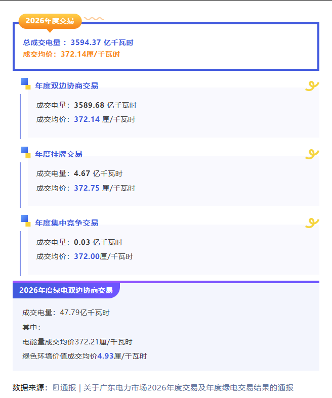 广东 | 2026年度交易成交均价372.14厘/千瓦时!